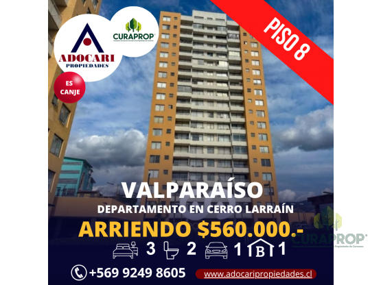 En el corazón del Cerro Larraín, con excelente conectividad, locomoción a pasos, cerca de servicios, colegios y a minutos del centro de Valparaíso.