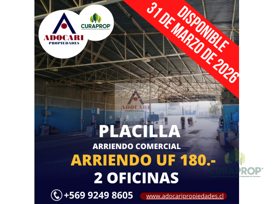 VALOR ARRIENDO: UF 180.